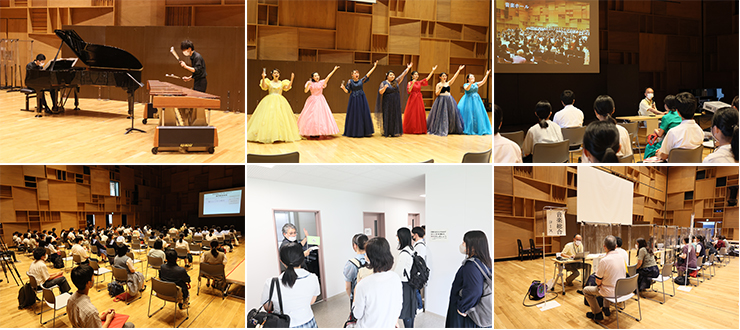 各コースの説明を行いました。今年度は新型コロナウイルス感染予防対策のため、ミニコンサートは当日に収録した映像を、後日動画配信の形に変更となりましたが、施設見学ツアーを実施し、たくさんの方に施設を見学いただきました。