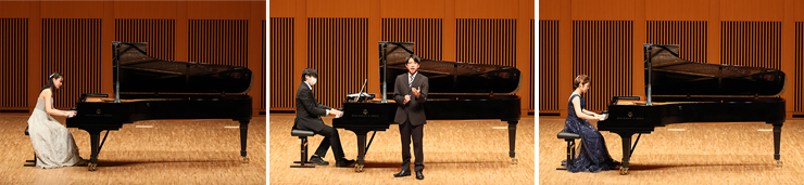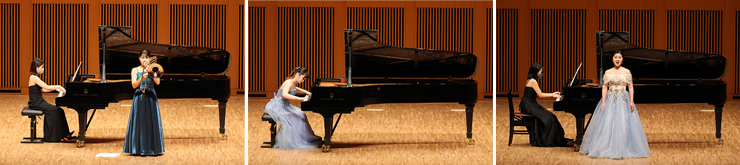 本学音楽科・専攻科音楽専攻の前期実技試験成績優秀者を、声楽・ピアノ・管弦打の各コースから選抜し、独唱・独奏曲による演奏を披露するもので、今年は13名の学生が出演しました。