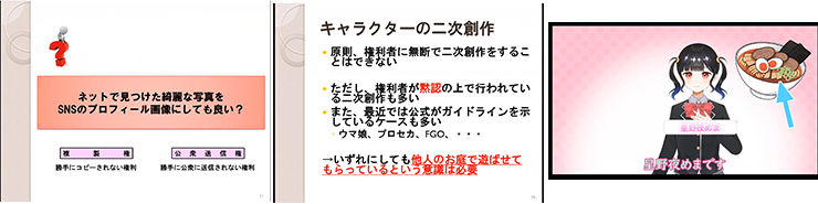 また、海賊版問題についても取り上げられ、野田研究室が県教委と連携して制作した情報モラル啓発用動画も使用されました。