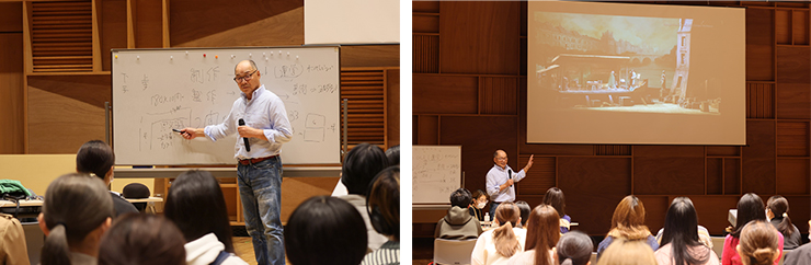 10月29日(土)、「アートマネジメント演習Ⅰ」に株式会社アートクリエイション代表取締役で舞台監督として活躍されている小栗 哲家氏と、同社で舞台監督を務める小田原 築氏(本学音楽科卒業生)を講師にお招きし、舞台監督の仕事について、講演とワークショップを行いました。