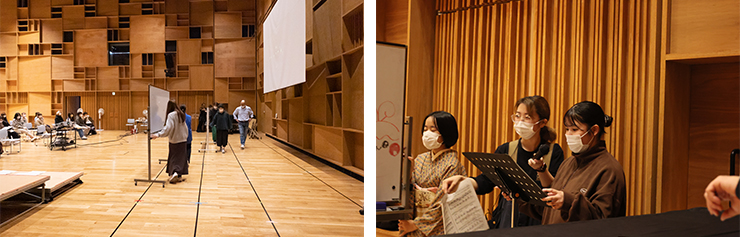 また、小田原氏より、舞台の場面転換を実際のオペラ舞台の動きに沿って時間通りに合わせるワークショップも行われ、学生は舞台監督の仕事を体験する貴重な機会をいただきました。