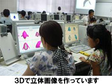 この講座は子どもたちの夏休み期間を利用して、親子で協力しながら3D制作用ソフトを使ってパソコンで自分の好きなキャラクターや動物の3次元立体を作成し、その立体模型を作り上げるものです。今回は、子ども19名、大人13名の計32名が参加しました。