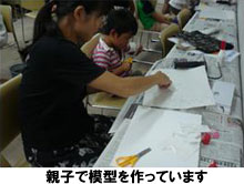 積み上げる順番を間違えたり、細かな部品に悪戦苦闘しながらも、個性豊かな作品に仕上げていました。子どもには難しい作業など親子で協力しながら、また近くの席の人と交流しながら作品作りを進めていく様子はこの講座ならではの光景でした。