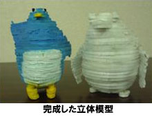 ①ソフトの操作に慣れるために、全員でパズル式の家などを組み立て、その後立体ペンギンを作る。