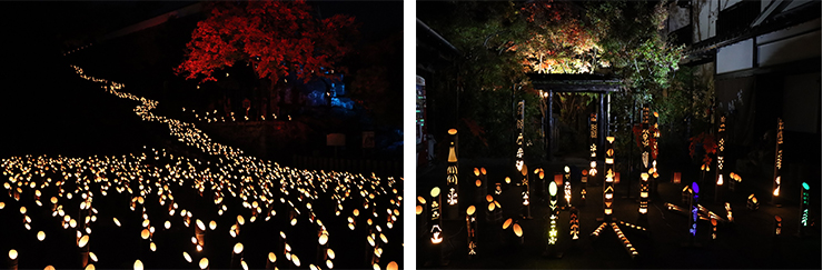 11月19日(土)、20日(日)の両日、大分県竹田市で行われる晩秋の風物詩「竹楽」にサービスラーニングの一環として取り組み、延べ50名の学生が参加しました。今年は3年ぶりに通常開催となり、市内各地に合計2万本の竹灯篭が設置され、多くの観光客で賑わいました。