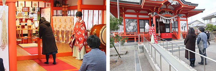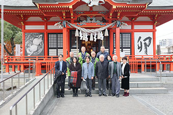 12月16日(金)の「干支絵馬奉納奉告祭」には、牟田さんと担当教員 永井学准教授が招待され、奉納神事では玉串奉奠が行われました。