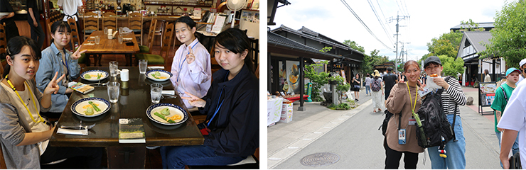 その後、出荷先のひとつである「レストラン南の風」で、ゆふいんの歴史や農業生産者との連携(地産地消の取り組み)についてお話をうかがい、アスパラガスを利用した食事をいただきました。 昼食後は、大分県内有数の観光地である「湯の坪街道」などを散策し、地域経済の循環や農業と観光の連携方策について考察しました。