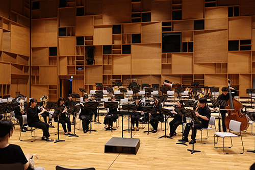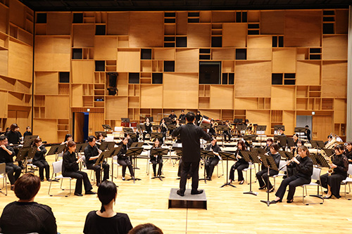 音楽科 管弦打コースの学生が出演し、清水万敬教授、髙田喜夫准教授の指揮のもと、管打楽器アンサンブル2曲と2023年度吹奏楽コンクール課題曲4曲を披露しました。