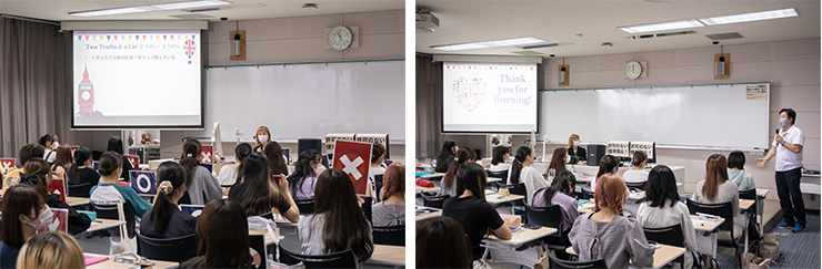 講義の随所で、イギリス文化に関する〇×クイズが実施され、学生たちは文化の違いに驚き、新たな発見があったようです。