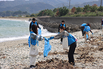 同イベントは、トヨタ自動車の社会貢献活動として全国の都道府県で開催されている参加型アクションプログラムです。今年度は昨年度に続き、大分市大字馬場の磯崎海岸で環境に関する学習会と清掃活動を行いました。