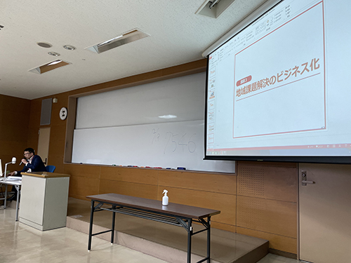 受講した学生からは「吉本興業は、お笑い事業がほとんどなのかなと思っていましたが、そのお笑い事業と絡めて全国各地で地域振興を行っているとは知りませんでした」「コンテンツで地域の魅力を発信していくというのはとても凄いなと思った」「地方創生では伝統工芸の継承をしていたり、新しい事業を考えたり、地域に貢献していることがわかりました」「メディアを活用した地域活性化の活動を担っていることを知れて良かった」などの声が寄せられました。