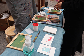 作品展示・販売や、シルクスクリーンの体験ワークショップを行っていました。印刷前の銅版画の版の展示もあり、制作の過程を垣間見ることができました。