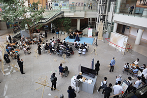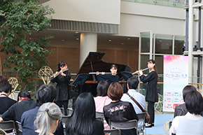 ピアノ独奏、管楽アンサンブル、オペラ名曲集の演奏があり、素敵な音色がアトリウムに響き渡った1時間でした。足を止めて集まる人や、2階からの観覧客も多くいました。