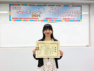 情報コミュニケーション学科・野田研究室の戸髙瑠菜さんが、一般財団法人日本サイバー犯罪対策センター(JC3)主催の「第2回フィッシングサイト撲滅チャレンジカップ」で個人表彰されました。