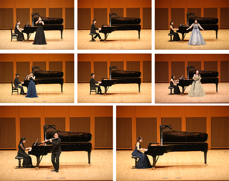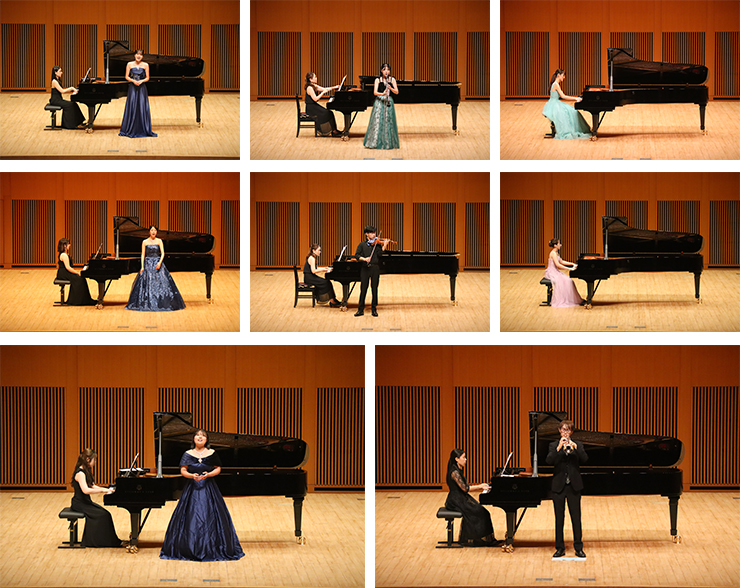 声楽コース・ピアノコース・管弦打コースから前期実技試験の優秀者を選抜し、16名の学生が独唱・独奏曲を披露しました。