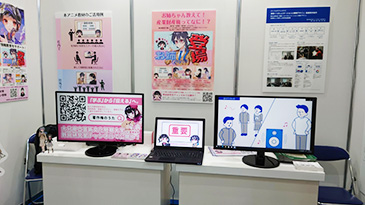 アニメ教材の珍しさに足を止めて話しかけてくれる人も多く、「コンセプトも取組みもオリジナリティが高く素晴らしい」、「硬い内容に対し、若者向けの動画は新鮮」という声や、大学関係者からは「講義で一方的に話す為伝わりにくいが、学生が自ら制作することで内容の理解につながると思う」といった感想がありました。