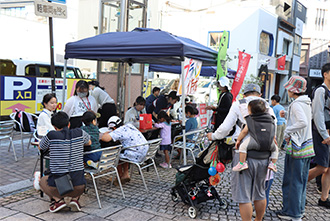 当日は午後1時から、子供向けのワークショップとしてプラバン作成、エコキャップ作成が行われ、娯楽として射的、輪投げ、ヨーヨー釣りが行われました。これらの活動には多くの親子連れの方々に参加を頂きました。