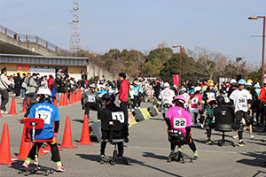 このイベントは一般の事務用の椅子を使って2時間耐久レースを行うもので、全国から35チームが参加しました。会場にはいすー1に加え、ダンス会場や地元食材の移動販売店なども設けられ、多くの観戦客で賑わいました。