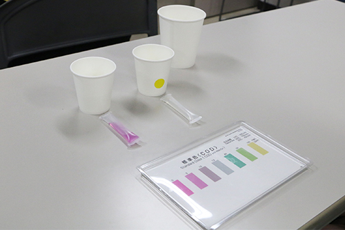 活動では最初に乙津川上流に向けて清掃活動を行いました。続いて地域社会特講Ⅰでお話をいただいた大分海上保安部の方々と合流し、庁舎にて海上保安部の業務についてご説明をいただくとともに環境汚染調査の実験を行いました。その後は、巡視船「やまくに」の船内をご案内いただき、船内設備や潜水士の活動についてご説明していただきました。