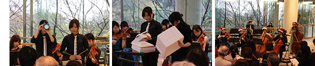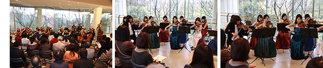 11月30日、川瀬麻由美教授率いる「芸短ストリング&パーカッション アンサンブルコンサート」が市美術館のホワイエで催されました。コンサートは、有元氏が愛したバロック音楽を前半に、後半はクリスマス音楽を中心に、川瀬先生の解説を交えて進められました。