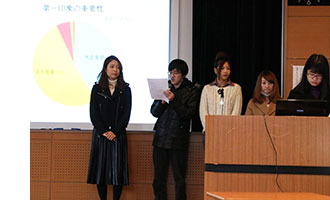 1月21日、 4~5名でグループを作り、自分たちでテーマを決めアンケートなどを実施、結果を発表する社会調査法発表会を行いました。