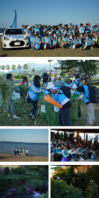 6月6日(土)、ウミガメの来る関の江海岸・ほたるの出る冷川を清掃しました。本学学生50名以上が参加しました。別府市の冷川は温泉水が流れ込まないので水温がほたるの生育に適し多くのほたるがいました。水質の汚染・人家の増加などによって減少、地元の人々の手によって次第に回復しつつあります。清掃をお手伝い、ほたるについての講演を聴きました。この日は多くのほたるが飛びみんなで楽しみました。