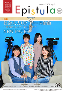 本学広報誌「Epistula(エピストゥラ)」vol.39・summerを発行しました。特集では情報コミュニケーション学科の3コースの紹介をはじめ、新任教員の寄稿、江漢大学からの留学生のメッセージを掲載しています。また学内ニュースや学友会情報、学長コラムなど本学の今を伝える1冊です。表紙は情報コミュニケーション学科・映像メディアゼミの4人に登場していただきました。