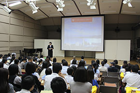 9月13日(日)、第2回オープンキャンパスを開催しました。高校や保護者など480名を超える参加があり、大講義室、視聴覚室などの4会場を利用して全体説明会を行いました。