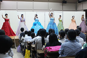 説明会後は、各科に分かれ、在学生によるキャンパスライフ紹介やミニコンサート、ネイティブ教員との語学体験や実際にPCに触れるメディア体験などを実施しました。