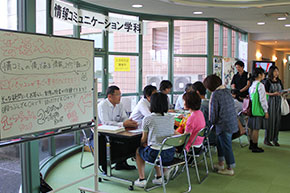 【情報コミュニケーション学科】ドラえもん作りなど様々なメディア体験を用意しました。