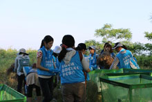 地域社会特講のときに紹介をきいて、また環境サークルの活動であったから参加しました。参加者は、思っていたよりも一般の方々が多く、APUの留学生など海外から来ていた人がいたこと。国際社会が身近に発展しているなと感じた。話をする機会は、少なかったが、一般、海外の方々と活動できて良い経験になった。協力して作業を行うことができた。