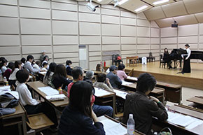 声の出し方からコンクールや受験への心構えなどまで、世界的に活躍するプリマドンナの多面的な指導にレッスンを受けた学生はもちろん、聴講者も熱心にメモを取るなどしていました。