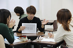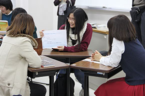 就職するのか進学するのか、就職するのであればどの業種のどの職種を目指すのか、進学するのであればどのような分野の学部学科を目指すのかを考え、その進路に決めた理由、目標に向かって努力していることなどを発表しました。発表会では3人1組になり、この日のために事前に準備した資料などを示しながら4分間自己PRを行い、その後4分間の質問を受けます。そのあと、10分間の振り返りを行い、話の内容だけでなく姿勢や表情、資料の準備状況などを指摘し合い、自己PR力の向上に役立てました。あと数ヶ月で進路活動も本格始動です。今回のポートフォリオ発表会を、進路活動のきっかけになることを期待します!