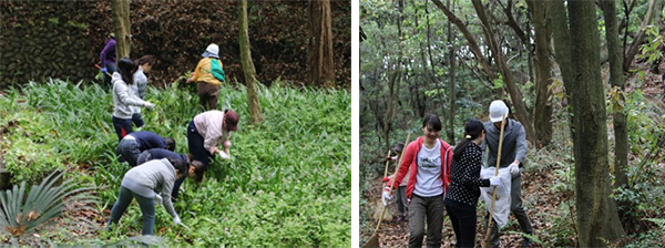 今年度最初の活動は4月24日(日)に行われ、本学から16名がサービスラーニングで参加し、自然の空気を堪能しつつ、森の清掃や手入れを行いました。
