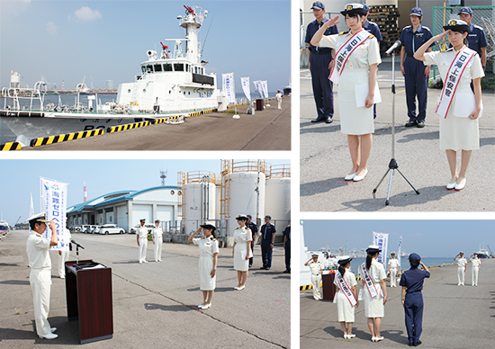 「一日海上保安官」として活動した大瀬日奈子さんは、「一日海上保安官を学生がするのは初めてと聞いてとても緊張しましたが、任命されたからには責任をもって頑張ろうと思いました。あこがれの制服を着たり、船に乗って呼びかけをしたり、海上保安部の方々が普段どのような仕事をされているのかを知ることができたりと、たくさんの貴重な体験ができました。海水浴のシーズンなので、少しでも海難事故を減らすことができるきっかけとなれたら嬉しいです。ありがとうございました。」と話しました。
