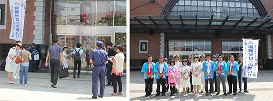 午後からは、JR大分駅府内中央口にてリーフレット等を配布し、歩行者の方々に海での安全を呼びかけるなど、街頭周知活動も行いました。