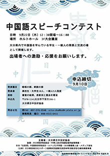 2016年9月22日(木)、大分県日中友好協会主催の「第1回中国語スピーチコンテスト」がホルトホール大分 3階大会議室にて開催され、本学学生3名が出場し、2名の学生が受賞しました。
